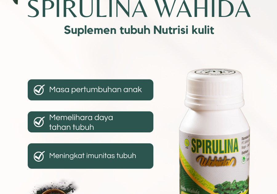 ” Vitamin Herbal Spirulina ” Sebagain Sumber Nutrisi Super Lengkap Berasa dari bahan baku spirulina murni dan perairan Jepara serta proses secara higenis dan halal. Kandungan nutrisi: Protein 4x daging sapi, zat besi 60-68x bayam, klorofil 2x alfafa, kalsium 5x susu sapi, betakaroten 25x wortel, vitamin E 3x tunas gandum. 1 Botol Spirulina isi 60…