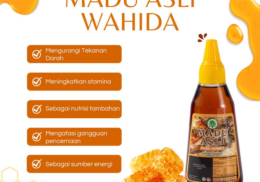 Madu Asli Herba Wahida Berfungsi Untuk : “Meningkatkan Stamina *Menjaga Daya Tahan Tubuh *Mengurangi Tekanan Darah * Dan Masih Banyak Lagi Manfaatnya Madu Asli Produk Wahida Telah Melewati Hasil uji laboratorium BBIA Departemen Perindustrian RI menyatakan Madu Asli Wahida mengandung Enzim Diastase sebesar 13-15%. Diastase merupakan enzim pengubah karbohidrat komplek (Polisakarida) menjadi karbohidrat sederhana (Mono…